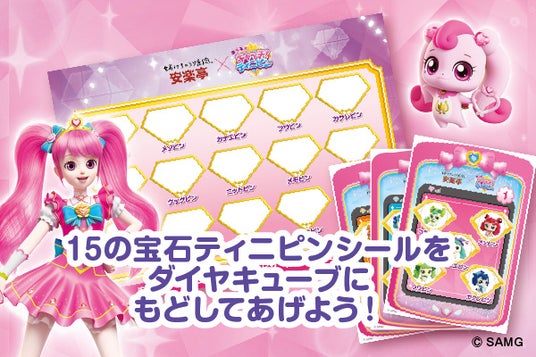 当フェアでは、コラボ限定グッズ「ティニピントング」をはじめ、15種の宝石ティニピンのシールを配した「ダイヤキューブシール」、ハチュピン・ココピン・ニコピン・マコピンをを描いた「ストロータグ」が登場。