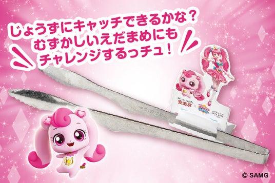 お肉を焼くときに使用するトングには「プリンセスダイヤハート」と「ハチュピン」を描いたスタンドをセット。