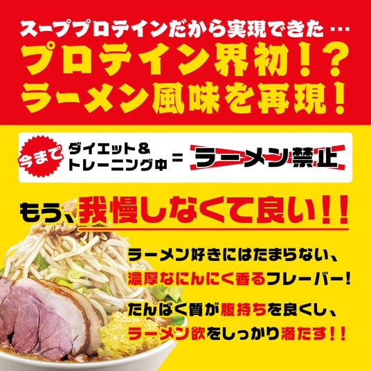 【プロテイン業界に激震!!】「美味しさ」にこだわった THE PROTEIN(通称:ザプロ)スーププロテインから「魔性の味わい」にんにく背脂醤油豚骨風味が販売開始!!