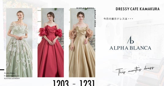 【DRESSY CAFE KAMAKURA】12月のディスプレイドレスは「ALPHA BLANCA」のウェディングドレスを期間限定でお届けいたします。