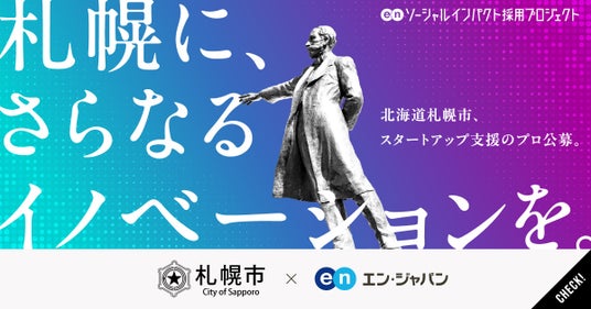 エン・ジャパン株式会社(本社:東京都新宿区、代表取締役社長:鈴木孝二)は、2024年11月28日(木)より、札幌市の『ソーシャルインパクト採用プロジェクト』(https://www.enjapan.com/)を開始しました。当社が運営する採用支援サービスを通じ、「スタートアップ推進担当(係長級)」を公募します。下記、本プロジェクト概要と、札幌市のコメントを紹介します。