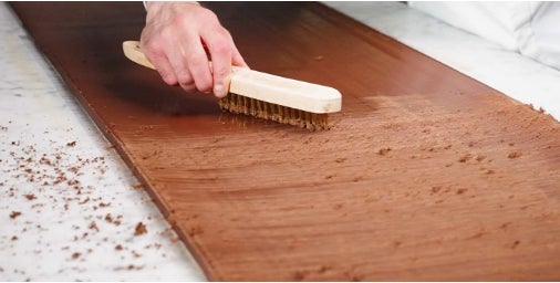 チョコレートを大理石の上に流した後に、木の質感を出すため、
