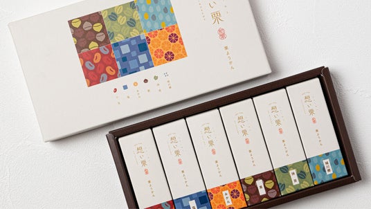 「栗ようかん」は、そんな想いを形にした、こだわりの和菓子です。愛媛県産の栗本来の風味を最大限に引き出すため、厳選した栗を丁寧に炊き上げ、みかんや酒粕など、地元で採れた素材を中心に組み合わせることで、6種類の個性豊かな味わいを生み出しました。