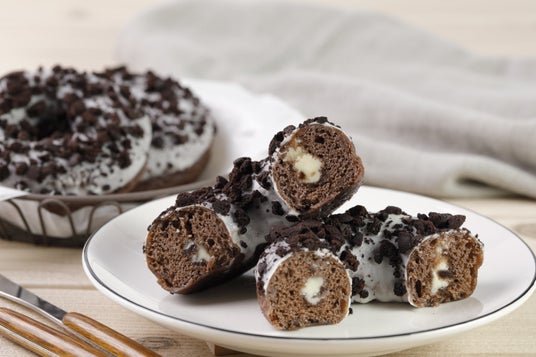 ミルククリーム入りのココア生地のドーナツにシュガーコーティングをし、ココアクッキーを贅沢にトッピング。