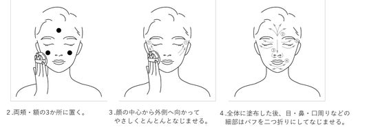 右側のブルー・ホワイトを指にとり、鼻筋やCゾーン等にとんとんとなじませる。