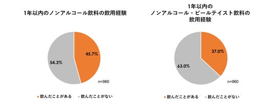 1年以内にノンアルコール飲料を飲んだことがある人が4割以上。8割の人が昔に比べておいしくなったと実感。