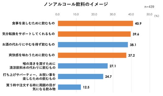 ノンアルコール飲料は、お酒の代わりではなく、食事を楽しんだり、気分転換をしたりするための飲み物としてのイメージが定着してきている様子がうかがえます。