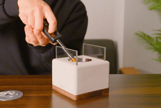 使い方は非常に簡単です。燃料を注ぎ、ライターで点火し、ゆらめく火をお楽しみいただいた後は、付属のフタをかぶせて消火するだけです。30秒あれば準備ができ、面倒な後片付けも必要ないため、ちょっとした時間にもお使いいただけます。