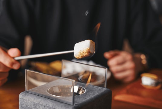 mfireではキャンプファイヤーのように、様々な食べ物を炙って楽しむことができます。マシュマロはもちろん、チーズやスモークサーモンなどのおつまみもオススメ。