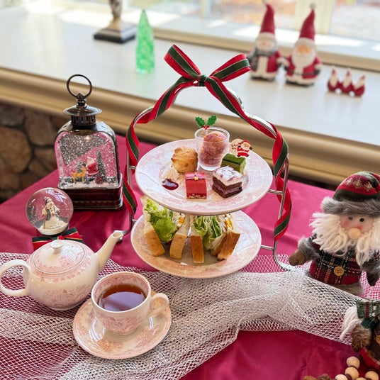 12月1日(日)から12月25日(水)までは「クリスマスアフタヌーンティー」を販売いたします。メインスイーツは、サンタクロースの装いをイメージしたフランボワーズのムースケーキに、プレゼントに見立てた、カラフルなブルーベリーと抹茶のケーキや、マーブルアイスクリームをお楽しみいただけます。