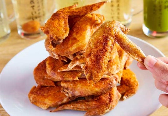 山積み歓迎!手羽先マウンテン(赤/白)・・・1本 99円(税込109円)パリッとした皮で覆われたジューシーなお肉が絶品!