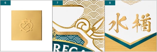 7. ボトルと同様に、ブランドを象徴する槍とフラッグをUV印刷のエンボス加工で立体的に表現しています。