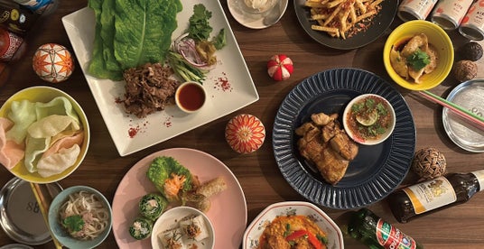 「よくばりコース」はその名の通り、メインディッシュが2種、自慢の春巻き三種に水餃子、〆のフォーなど、全9品をたっぷりご堪能いただける満足コース!メインの1種、“ガイヤーン”は甘辛ダレで仕上げた鶏もも肉のグリルに、爽やかなライム果汁をミックスさせた自家製プラムソースでさっぱりと。もう1種のメインは、韓国料理・サムギョプサルをアレンジした、当コースでしか味わえない“ラムギョプサル”。薄切りラム肉と搾菜、きゅうりをサンチュで包み、特製チリソースを付けて豪快にかぶりついてお召し上がりください。その他、生・揚げ・蒸しの”春巻き三種盛り合せ“、旬のカキをフライにし、パッポンカリーと合わせた一皿など、自慢の料理をたっぷり味わっていただけます。