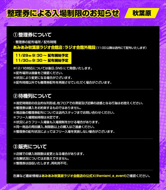 ※11/29(金)、11/30(土)、12/1(日)は整理券対応を予定しております。詳しくは画像をご確認ください。