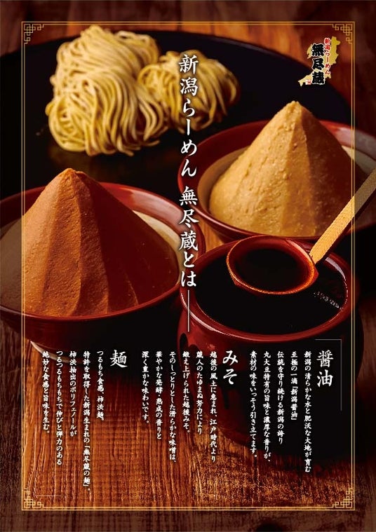 新潟発祥の「無尽蔵」は、新潟県の特産品をふんだんに使用したラーメンを提供しており、地元の豊かな食文化を発信しています。