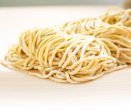 「柿渋麺」は、新潟県産の「佐渡おけさ柿」の渋を練り込んだ特許製法の麺で、独特のコシと滑らかな食感を実現。柿渋に含まれる「柿タンニン」が、麺に深い旨味を加え、他では味わえない美味しさを生み出します。この画期的な麺は、2002年のJR新潟駅前のパイロットショップ開店以来、「無尽蔵」のブランドで全国に発信され、高い評価を得ています。