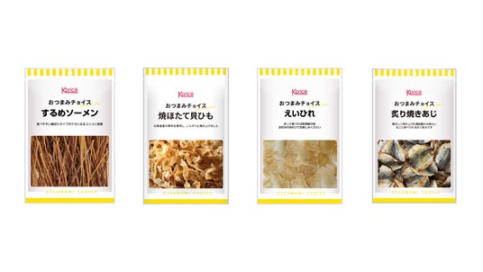 当社のプライベートブランド「Kprice」は、お客様にとって親切な(Kind)価格(Price)を追求した、なんでも酒やカクヤスのオリジナルブランドです。「Kprice」の食品ラインナップである“おつまみチョイスシリーズ“は、これまでナッツ類やイカなどを使用した魚介類のおつまみを展開しており、お酒のおつまみとしてご好評いただいております。