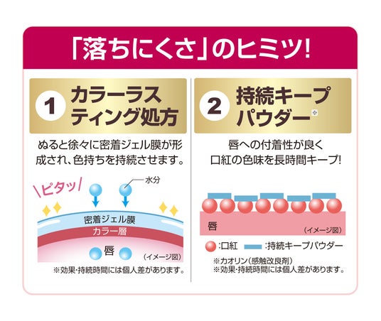 さらに唇への付着性が良い持続キープパウダーを配合。