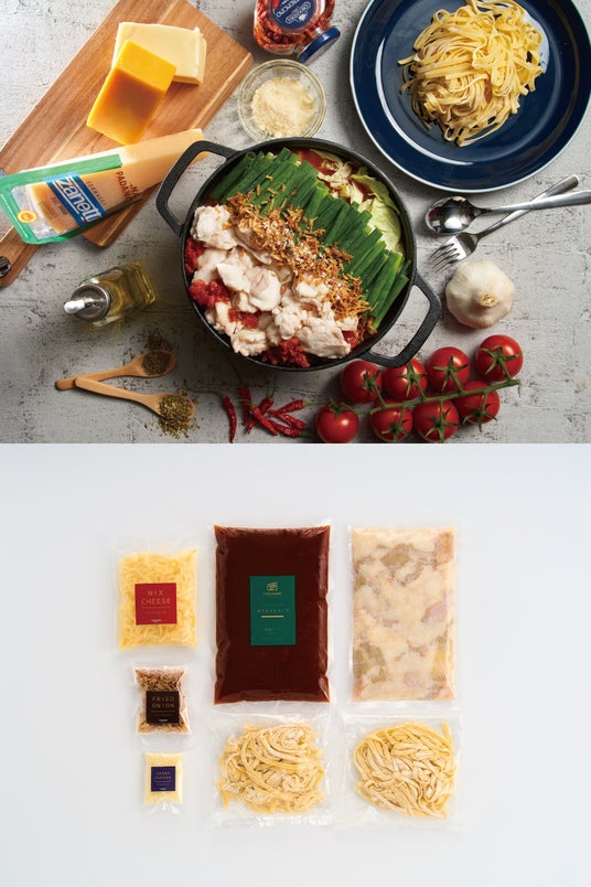 TAKUNABE 国産牛もつ鍋-チリトマト味- 極上生パスタセット (2~3人前)