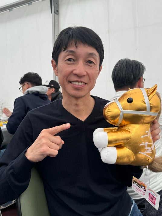 左:武豊ジョッキー サイン入り ノーザンホースパーク オリジナルぬいぐるみ(No.1)