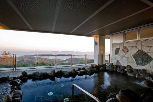 開放感のある天然温泉露天風呂を併設する大浴場はご宿泊当日24:00まで、翌朝は6:00から9:00までご利用いただけます。一部山頂からの眺めもお楽しみいただけます。