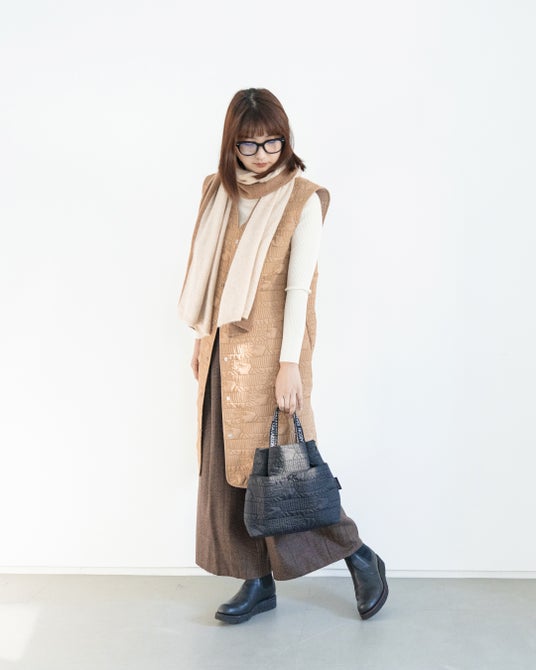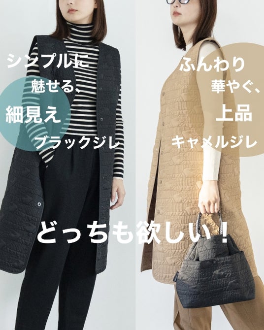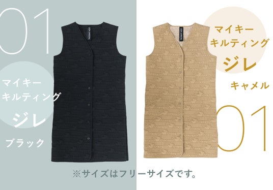 目玉アイテム「マイキーのキルティングジレ」はブラックとキャメルの2色展開