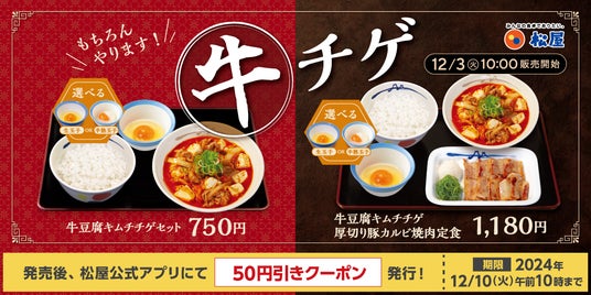 このたび松屋フーズ(本社:東京都武蔵野市、代表取締役社長:瓦葺一利)では、牛めし・カレー・定食・その他丼の「松屋」におきまして、2024年12月3日(火)10時より「牛豆腐キムチチゲ」を販売いたします。