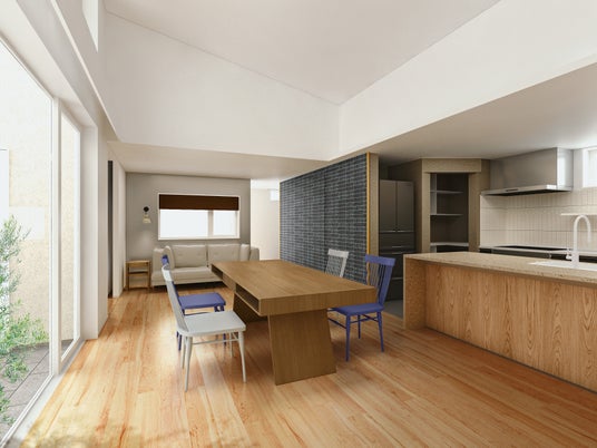 中庭とつながる明るく開放的な空間、プライバシーも万全。家族の会話を大切にした設計です。