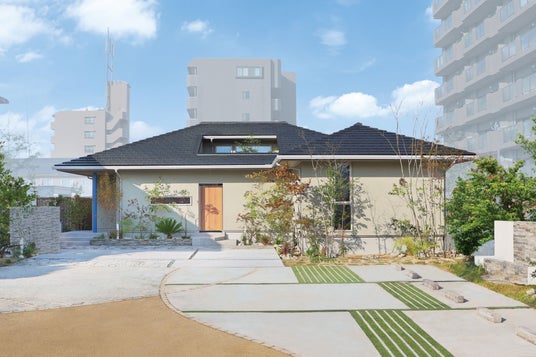 開放的な内観とは対照的に、プライバシーを確保した洗練された外観デザイン