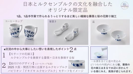 これらの陶芸作品は、2025年2月に在ルクセンブルク日本国大使公邸で開催される天皇誕生日祝賀レセプションでの披露を予定しており、両国の新たな文化交流の架け橋にしたいと考えています。また、2027年日本とルクセンブルクの外交樹立100周年に向け、これらの陶芸作品を政府要人/経済界のトップ/文化関係者らに広くPRし、両国の友好関係の発展につなげていきたいと考えています。