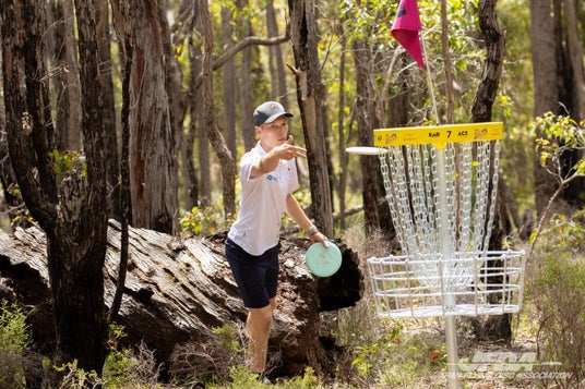 ディスクゴルフは、バスケット型のゴールが設置されたコースを巡り、ゴールにディスクを入れるまでの投数の少なさを競う種目です。公園や森林等の自然環境の中にコースが設置されるため、地形や風の影響を考慮した戦略と、それを実現するディスクコントロール技術が試されます。セルフジャッジ制を採用しており、ルールを自ら遵守するとともに、対戦相手や自然に対する敬意を持って試合を進行します。