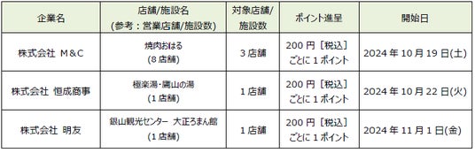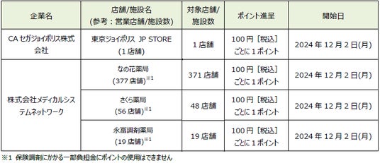 * 記載の店舗/施設数は、発表日現在の店舗/施設数となります。
