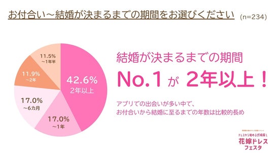 お付合いから結婚が決まるまでの期間第1位が「2年以上」!アプリでの出会いが多い中で、お付合い年数は比較的長め!