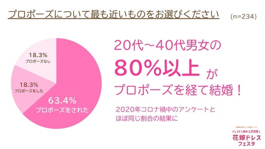 令和カップルの80%以上がプロポーズを経て結婚しており、コロナ禍より5%増える結果に!(2020年調査のプロポーズ実施率:76.7%)