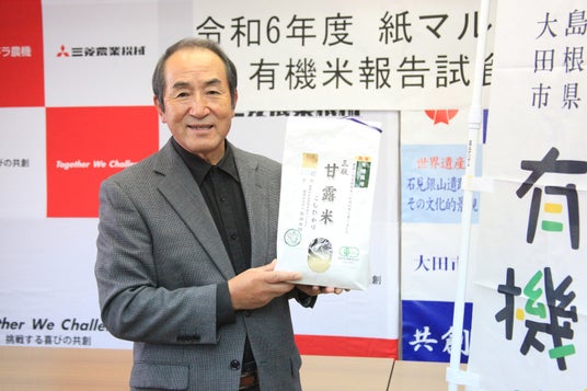 島根県大田市(市長:楫野弘和、以下 大田市)と三菱マヒンドラ農機株式会社(本社:島根県松江市、CEO取締役社長:齋藤徹、以下 三菱マヒンドラ農機)は、本年、有機米の産地づくりに関する連携協定を締結し、同地域にて紙マルチ田植機を使った有機米の栽培を行ってきました。11月28日、本取り組みで有機米が初収穫されたことを受け、市長及び三菱マヒンドラ農機社長が出席する報告試食会を実施しました。