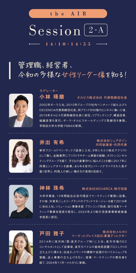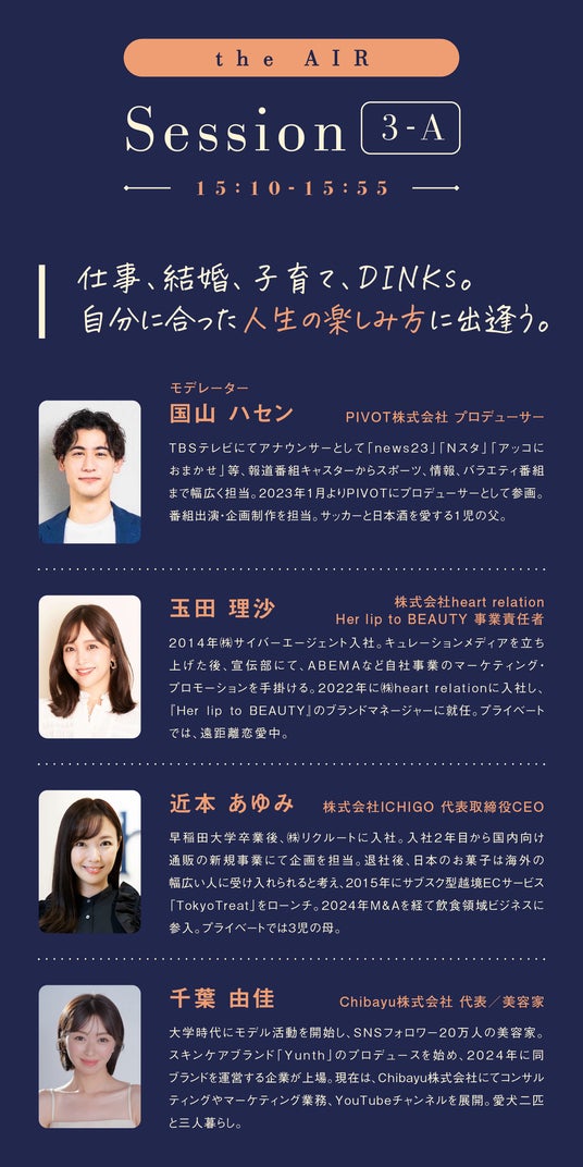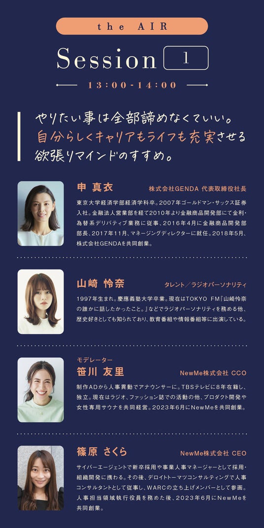 だからこそ、変化のタイミングであるこのチャンスを活かし、一人ひとりの女性が自分オリジナルの人生を納得して選択できるように、本イベントを実施します。