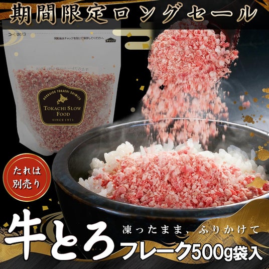 ★牛とろフレーク500g 期間限定ロングセール通常は週末24時間のみ販売の牛とろフレーク500gを"いい肉の日"に合わせ期間を延長して販売いたします。