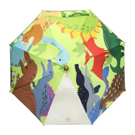 安全透明子供傘-わらわべさうるす子供に大人気な恐竜。そんな恐竜のモチーフを詰め込みテキスタイルに仕上げました。