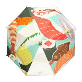 安全透明子供傘-わらわべおすし日本食で人気な、お寿司。このお寿司をモチーフに可愛らしいテキスタイルに仕上げました。