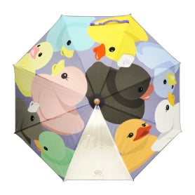 安全透明子供傘-わらわべあひるお風呂にぷかぷか浮かぶあひるのおもちゃ。このあひるをモチーフに可愛らしいテキスタイルに仕上げました。