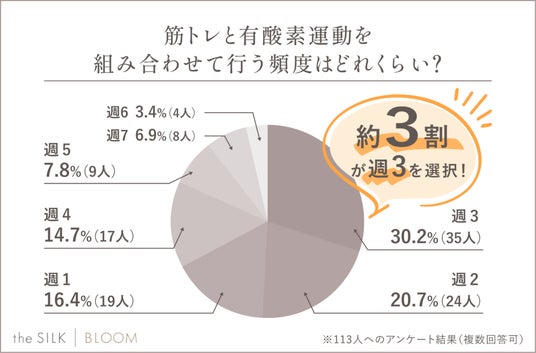 有酸素運動と筋トレの効果的な時間配分について、女性113名にアンケートを行いました。