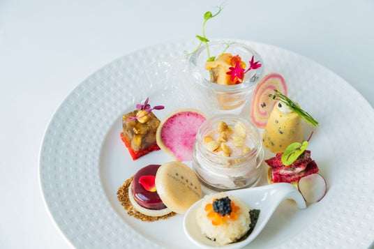 フードテック企業である株式会社Dr. Foodsによって開発された植物性の世界三大珍味「ヴィーガンフォアグラ」「ヴィーガンキャビア」「ヴィーガントリュフバター」をオードブルヴァリエに使用しています。フォアグラの元となるアヒルやガチョウの飼育方法や、キャビアの元となるチョウザメの絶滅危惧が問題視される中、このようにSDGs17の目標のうち12番目の『作る責任・使う責任』14番目の『海の豊かさを守ろう』に視点を置いた食材を取り入れています。