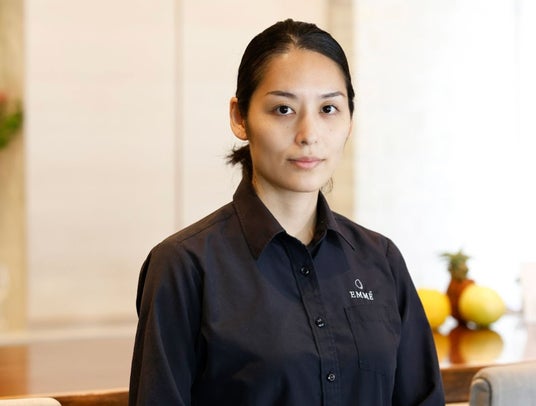 EMME オーナーシェフ延命寺美也1987年京都生まれ。料理好きのお母様の影響で昔から料理の世界に憧れを持つ。【ラチュレ】をはじめ、【広尾パティスリーアレグレス広尾】、【パティスリープレジール】、【田町具楽湾】、【ツキ・シュールラメール】にてシェフパティシエを務め、2019年9月にアシェットデセールとワインのお店【EMME(エンメ)】をオープン。ゴ・エ・ミヨ 2023にて、デザートの独創性と個性を特に際立たせ、かつコース料理の締めくくりにふさわしいレストランデザートを提供しているパティシエに贈られる「ベストパティシエ賞」に選出された。