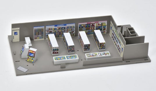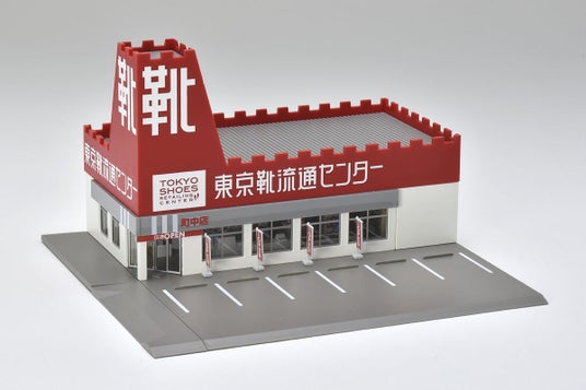 今回発売される模型は、その特徴的なギザギザ屋根や大きな看板を忠実に再現!そして外観だけでなく、店内もおもちゃや靴の専用シールで商品棚を演出できる、マニアにはたまらないアイテムです!