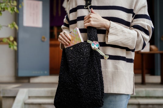 ▫︎特徴:オリジナルデザインの編み込みパターン。茶道具の桐箱などに使用される「真田紐」を採用。