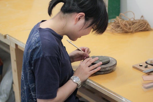 制作をお願いした宮吉製陶、織元「すみや」を訪れた際には大学の先生方に案内してもらい、普段見ることができない職人さんの作業現場を見学させてもらいました。"良縁守「くくる」"は、穏田神社を参拝しお守りをそれぞれの願いを込めて結ぶという行為をすることで、その時に自身の心に誓った想いを結んでほしい。そして身近な日常生活で想いも含めてその人を見守るものであってほしいと思っています。