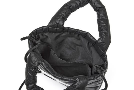 バッグ本体には軽いキルティング生地、ハンドル部分には手触りの良いパデッド風生地を採用しています。重量は約90g。