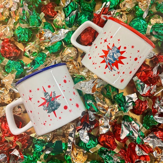 2024年ホリデーシーズン限定、世界的なイラストレーターAnna HiggieがVenchiのために描き下ろしたイラストのマグカップが届きました。ノスタルジックな中に斬新さも感じさせるイラストは、スキーを履いたサンタと、オーナメントを持ったクリスマスツリーの妖精の2柄。Venchi各店でチョコレートやパネトーネをお買い上げいただいたお客様にプレゼントいたします!