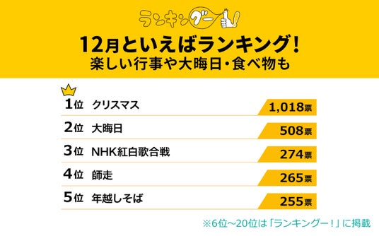 ◆12月といえばランキング!楽しい行事や大晦日・食べ物も ランキング概要