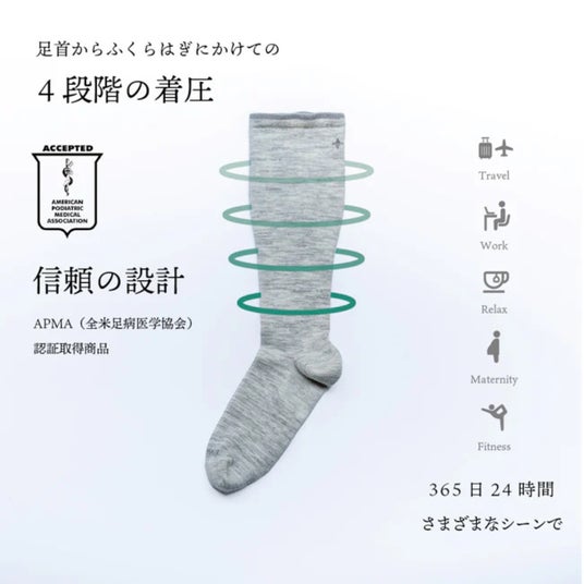 ソックウェルの商品は、全米足病医学協会(APMA)からの認証を受けています。本認証は、足病分野において世界的な権威を持つ医師の審査を通過することで与えられ、製品が足の健康維持、継続的な使用における足のケア・リカバリーに非常に高い効果があることが認められたことを示します。